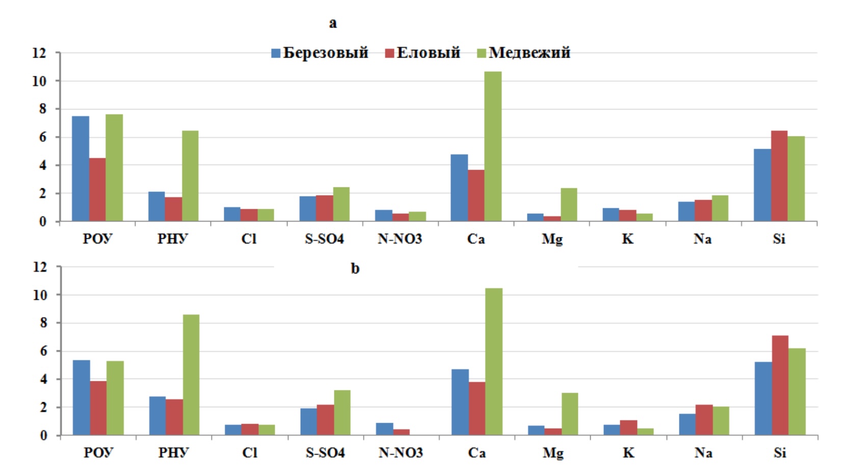 Вынос растворённых веществ с речными водами горно-лесных бассейнов в годы различной водности