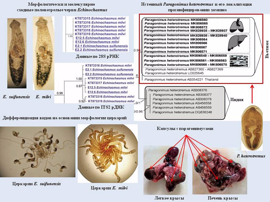 Обосновано новое положение монотипического семейства Liliatrematidae в ранге подсемейства в составе Opisthorchiidae. Установлено, что истинные представители вида Paragonimus heterotremus вызывают развитие трех форм парагонимоза: легочной, печеночной и мышечной. Согласно результатам, интегративный подход в изучении паразитических червей гарантирует объективность в их таксономии и систематике.