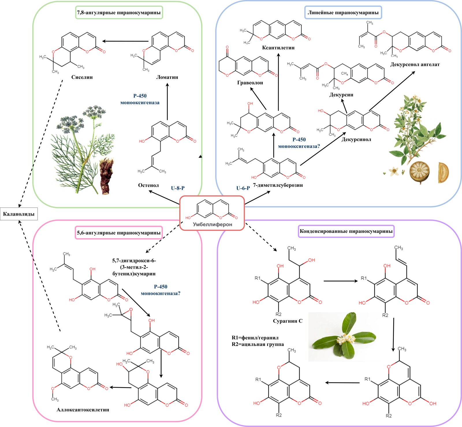 В процессе поиска перспективных веществ с высокой биологической активностью, изучены биосинтетические пути продукции низкомолекулярных метаболитов и разработаны технологии повышения продуктивности клеточных культур. Впервые обобщается современное понимание классификации, строения, распространения и биологической активности пиранокумаринов. Сведены в единую схему разрозненные данные о биосинтезе этих веществ. Впервые проведен химический анализ каллусной культуры Drozera rotundifolia L. Показана связь наличия дифференцированных органов в культуре ткани с накоплением нафтохинонов, флавонов, эллаговой кислоты и ее производных. Также показаны тканеспецифичные различия в составе полифенолов эндемика Приморского края - змееголовника Харкевича (Dracocephalum charkeviczii Prob.) у растений из природной популяции и микрорастений, полученных в культуре in vitro.