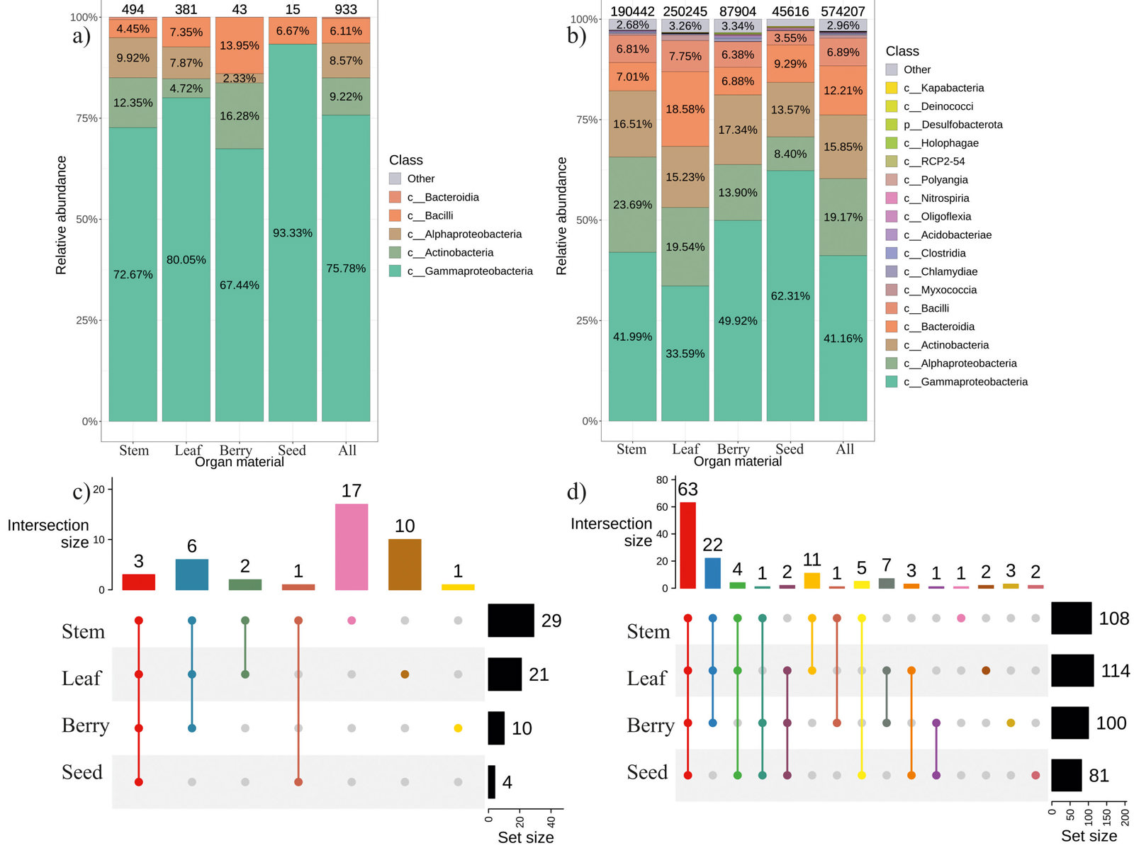 Рис. 2. Многообразие бактериальных эндофитов, изученное с помощью прямого высева на специализированные среды и метагеномного анализа