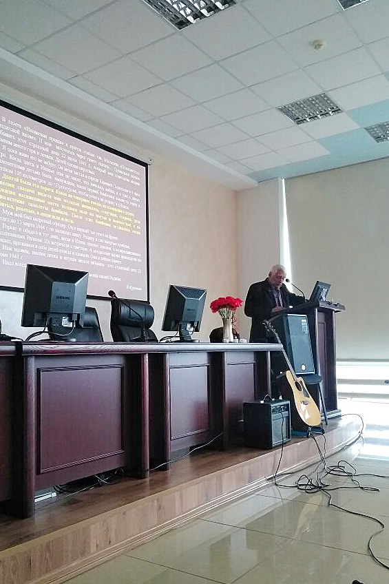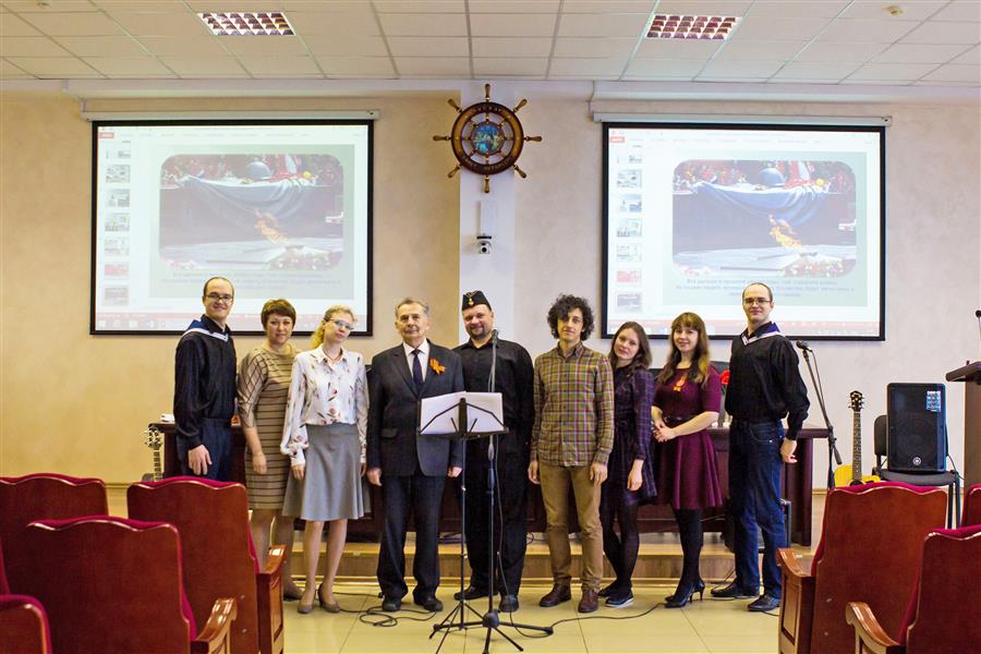 На нём были исполнены известные песни: "Вставай, страна огромная!", ставшая своеобразным гимном защиты Отечества и звучавшая в годы войны каждое утро по Всесоюзному радио после боя кремлёвских курантов; "Березы" из к/ф "Первый день мира", "Давно мы дома не были", написанная в мае 1945 года под Кёнигсбергом; "Журавли", посвященная солдатам, погибшим во время военных действий и многие-многие другие. С рассказом о тяжелых временах войны выступил научный руководитель Центра – Юрий Николаевич Журавлев. В нём были и воспоминания об отце, погибшем в 1944 г., и отрывки из писем матери Юрия Николаевича к отцу, а также обеспокоенность о современном положении в мире умудрённого жизненным опытом человека. Александра Авраменко рассказала о своем дедушке - Виталии Андреевиче Сорокине, военном летчике, Герое Советского Союза, совершившем 74 боевых вылета, получившем серьёзное ранение и прожившем активную послевоенную жизнь. В концерте приняли участие сотрудники Центра: Владимир Иванович Голов, Дмитрий Атопкин, Артур Никулин, Вячеслав Никулин, Полина Перепелкина, Максим Бурдуковский, Татьяна Евстигнеева, Александра Авраменко, а также талантливые коллеги из других институтов ДВО РАН – Анна Катугина (Национальный научный центр морской биологии), Елена Дмитриева (Институт химии). Зрители очень тепло встречали участников и исполнителей концерта, подпевали им и долго не отпускали после окончания, отблагодарив их бурными аплодисментами. После музыкальной части всех угощали фронтовой походной кашей, приготовленной поварами столовой Центра. Торжество состоялось благодаря активному участию творческой молодежи, а также поддержки администрации и профсоюзного комитета Центра. Мирного неба и счастья!