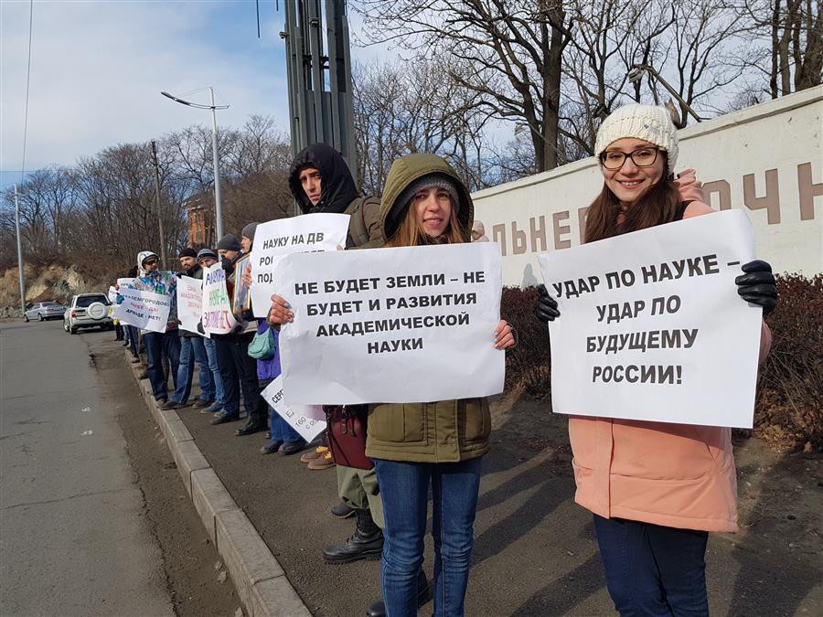 В среду, 13 марта 2019 года состоялись два пикета научных сотрудников ДВО РАН против