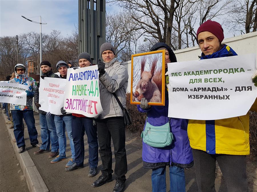 ПИКЕТЫ НАУЧНОЙ ОБЩЕСТВЕННОСТИ ПРОТИВ ЗАСТРОЙКИ ЖИЛЫМИ ДОМАМИ ТЕРРИТОРИИ АКАДЕМГОРОДКА ДВО РАН