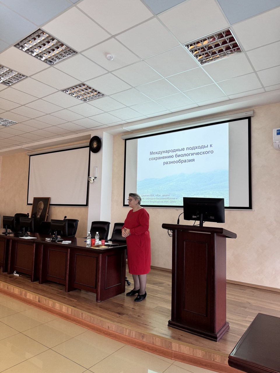 После вступительного слова председателя Комиссии по Комаровским чтениям Богачевой Анны Вениаминовны аудитории был представлен доклад Царенко Натальи Альбертовны с обстоятельным разбором международных подходов в деле сохранения биоразнообразия. Не менее подробным оказался и следующий доклад. Бурундукова Ольга Леонидовна рассказала об истории, развитии и прогнозах изучения женьшеня сотрудниками нашего института и китайскими коллегами.