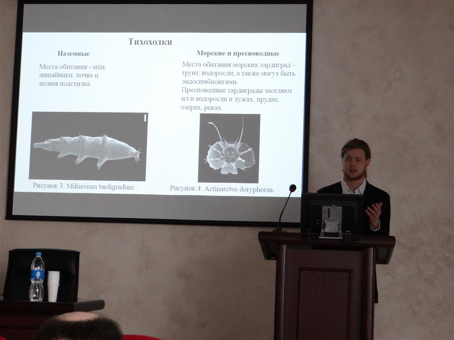 По традиции «Чтения» открылись докладами по истории биологических исследований на Дальнем Востоке России. В частности, неизвестным фактам участия иностранных военнопленных Первой мировой войны в энтомологических исследованиях и работе Русского географического общества в Сибири и на Дальнем Востоке в 1914–1920 гг. была посвящена презентация Е.В. Новомодного и Е.А. Беляева. История энтомологических исследований Шантарских островов в Охотском море была изложена в сообщении О.В. Куберской и Е.В. Новомодного. В докладе М.Ю. Прощалыкина, Ю.В. Асафурова и Д.А. Сидорова были подведены итоги изучения фауны пчел Монголии, а в докладе Е.В. Маськина и П.В. Гребенкина приведены новые данные по фауне тихоходок Дальнего Востока, полученные с использованием метода молекулярного баркодинга.